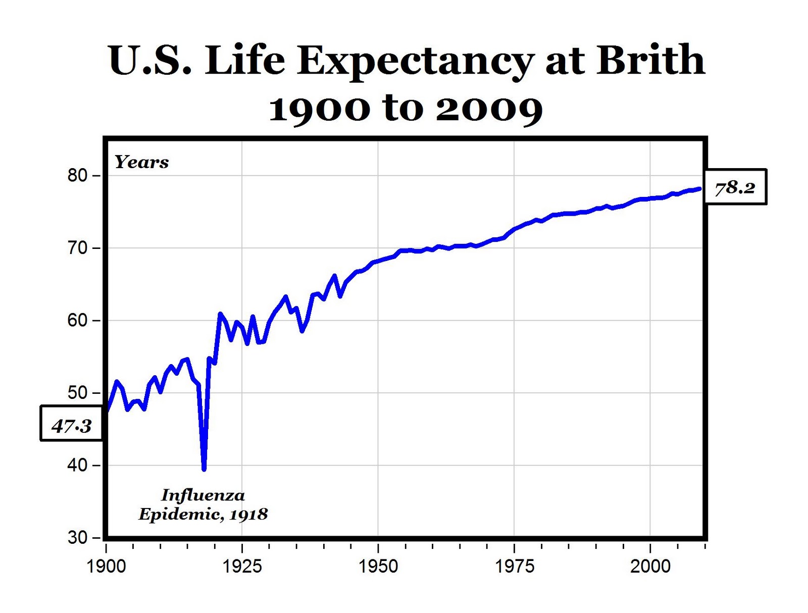 20th Century Trend in Life Expectancy: Main Factor of Tech & Science Explosive Growth